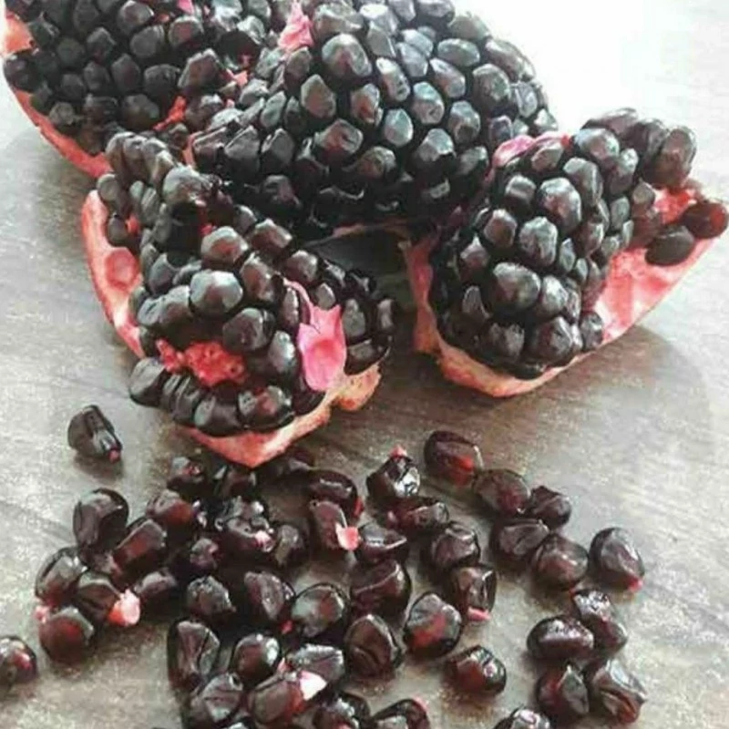 نهال انار دانه سیاه " این رقم دارای پوستی قرمز و دانه های سیاه میباشد . این دارای طعم بسیار شیرینی میباشد . برای آبگیری و تازه خوری بسیار می تواند مناسب باشد .